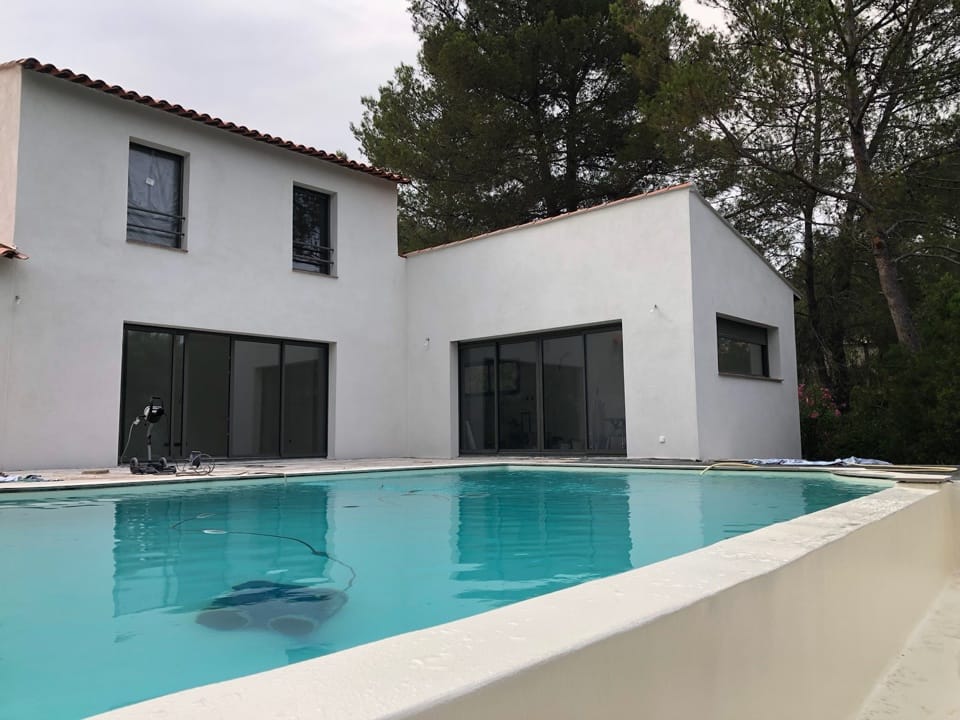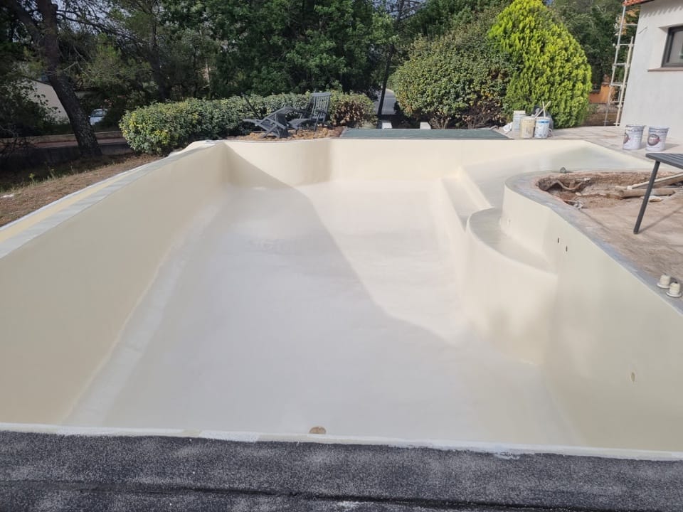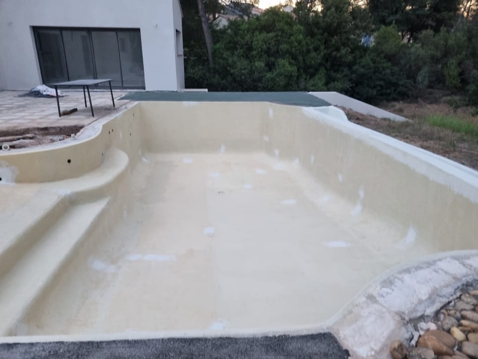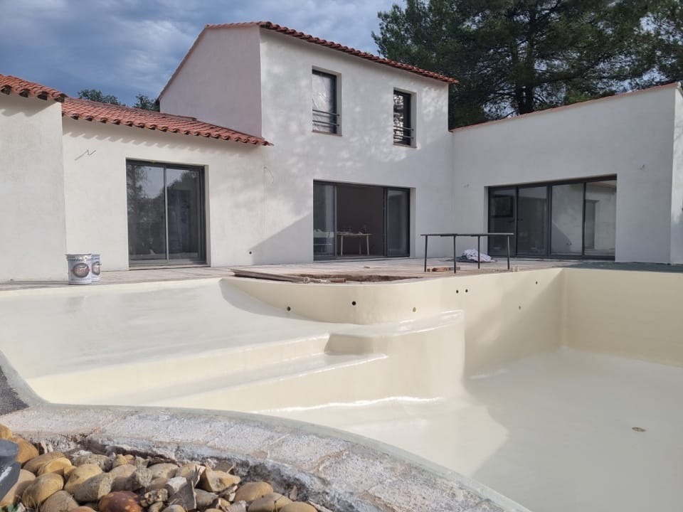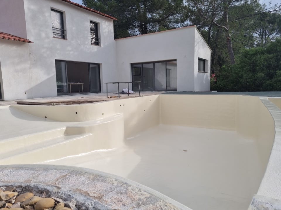 Dans le cadre de la rénovation complète d’une villa à la Bouverie (commune de Roquebrune-sur-Argens, Var), nous sommes intervenus pour la rénovation de la piscine. Un bassin de 12m x 6m, avec plage et débordement, qui était auparavant recouvert de mosaïque.